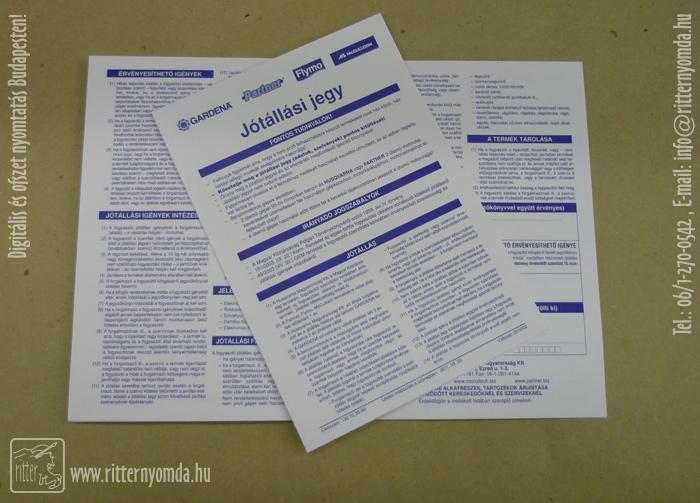 Offset printing warranty card